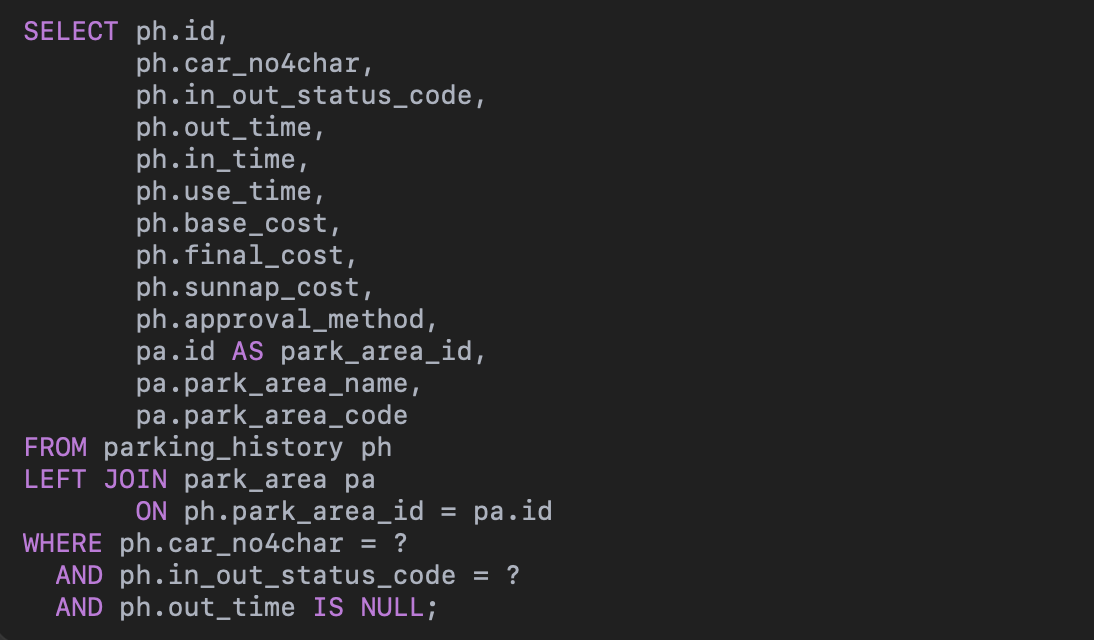 public List<ParkingHistoryResponseDto> findInoutByCarNum(String carNum) {