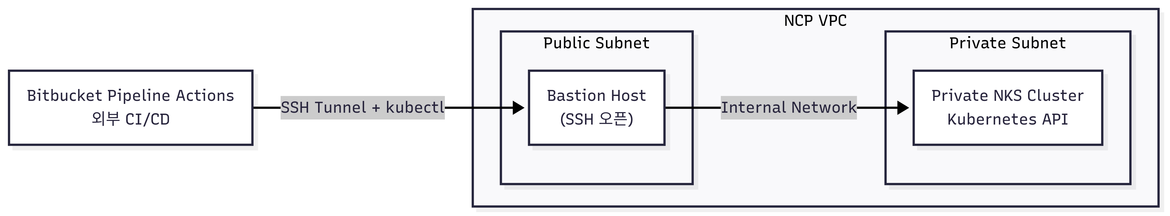 사용중인 레포지토리는 Bitbucket 인데, Pipeline이라는 좋은 기능을 제공한다. Github Action 처럼 Bitbucket 자체에 내장되어 CI/CD를 간편하게 해줄수있는 도구이다. 이를 통해 구축 하려고 하는 방식은 다음과 같다.