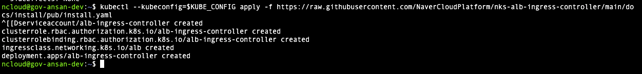 kubectl --kubeconfig=$KUBE_CONFIG apply -f https://raw.githubusercontent.com/NaverCloudPlatform/nks-alb-ingress-controller/main/docs/install/pub/install.yaml